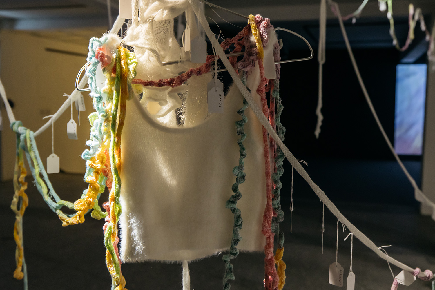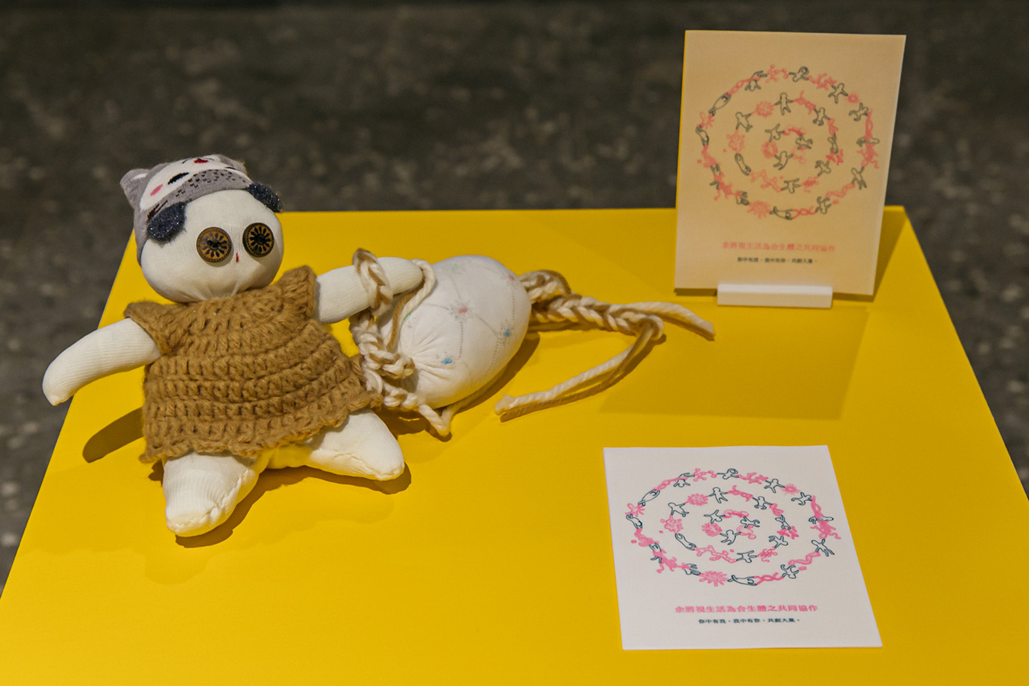 〈相即共生練習簿 — 出神 1:1〉(Studies of Interbeing - Trance 1:1)嘗試透過連結圍觀分子生物學層次的節奏、速度、與動作,在人類尺度以針織與舞蹈行為重新人類大腦可感知的層次具體化(Embodiment),並透過具體化的經驗建構,重新塑造中性而感性的人類與病毒、人類與人類交流方法論與平台,在已知的科學解釋上拓展當代的文化方法,填補理性至上所造成的人類與疫病文化真空,實驗當代科學脈絡之下人類與病毒共生所能協助人類面對自身的文化儀式。並試圖在「病毒與人類共存為恆常」的前提下,找尋不帶偏見、直接以身體感出發理解病毒—人類關係的方式,作為一種冥想儀式,並試圖與人類集體記憶中的「冠狀病毒靈」對話,讓對於COVID19個人私密而獨特的病毒接觸經驗能超脫科學霸權的箝制而有所依歸,也從而探索人類與病毒共存的各種面向。