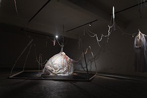 《邊界溶解》受COVID19疫情後的人類行為百態所啟發,從「精神演化」的角度去正視人類作為自然界的成員必須與病毒攜手共創未來,並作為一個巨大生物群體,面對病毒演化的速度望塵莫及,此一無所適從的狀態,嘗試發展出一套文化工具去觀察每個人對於「免疫邊界」的定義,以及試圖調整「免疫邊界」可能行為與方法。